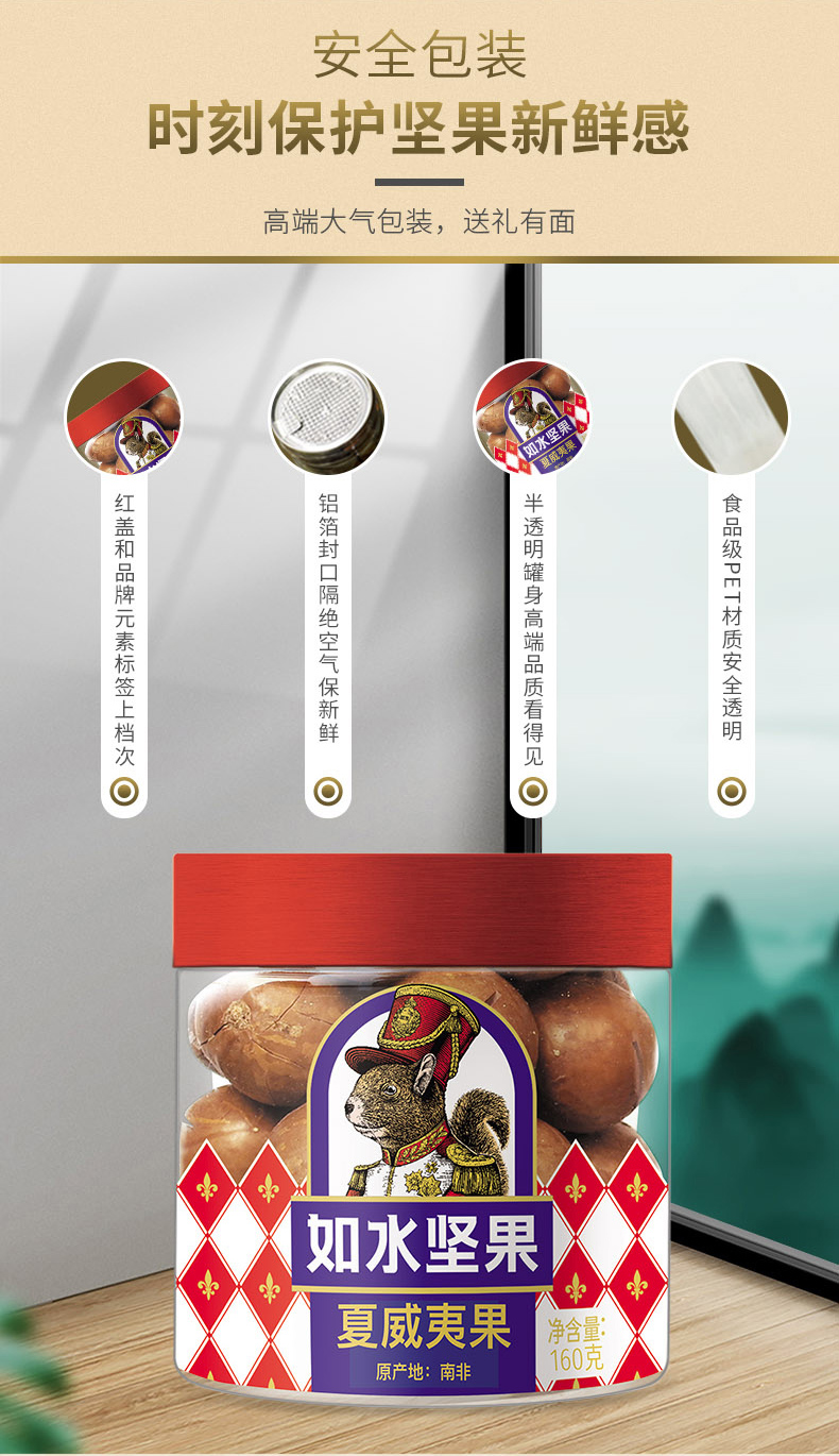 商品名称:如水夏威夷果160g*2罐