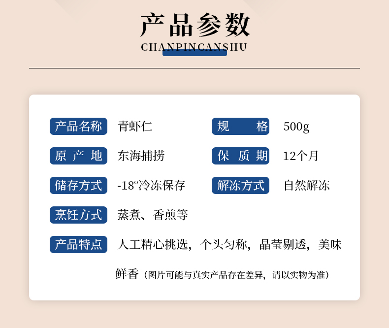 商品名称:【顺丰配送】淘鲜拾光深海捕捞国产大号去线青虾仁500g*2袋