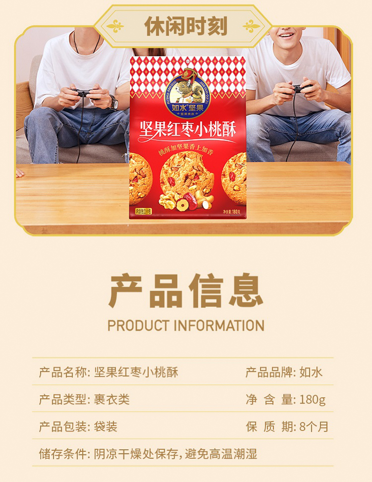 商品名称:如水红枣小桃酥180g*2袋