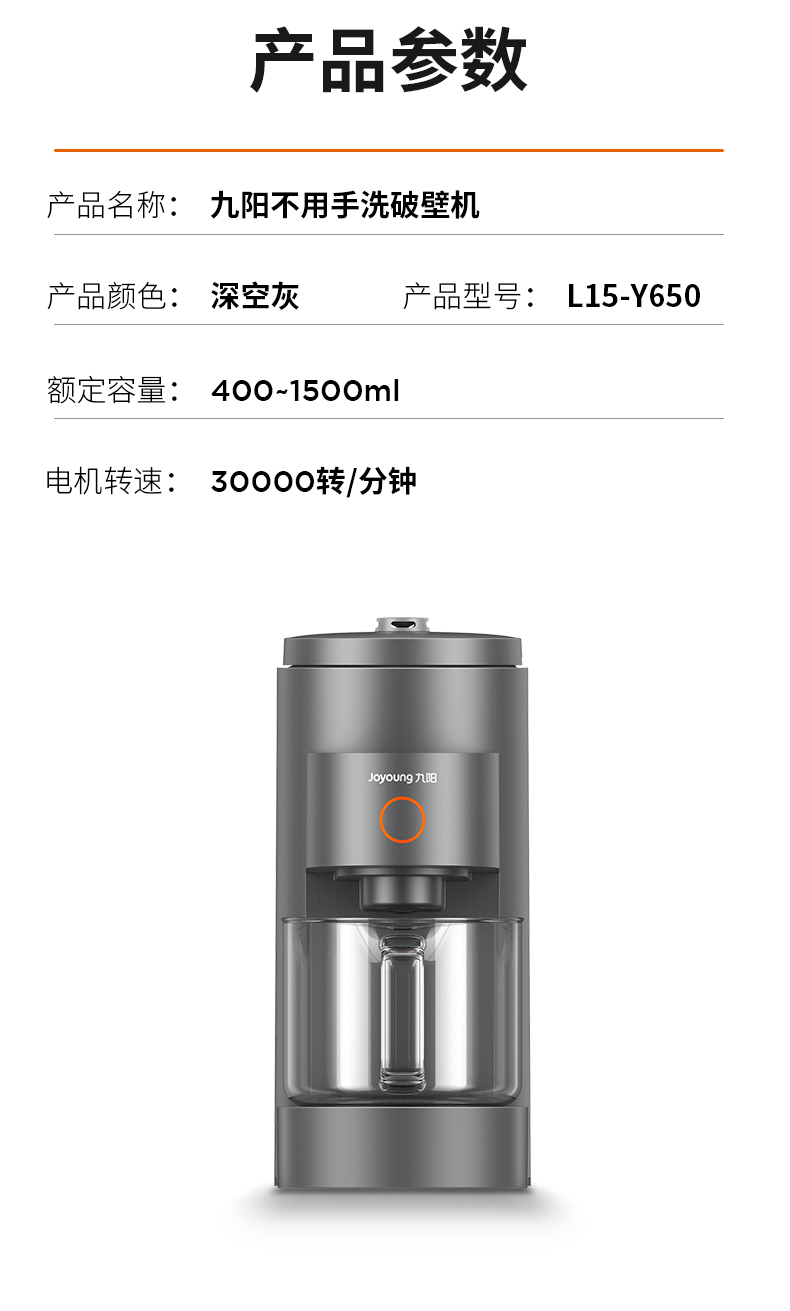 商品名称:Joyoung/九阳1.5升不用手洗破壁机L15-Y650