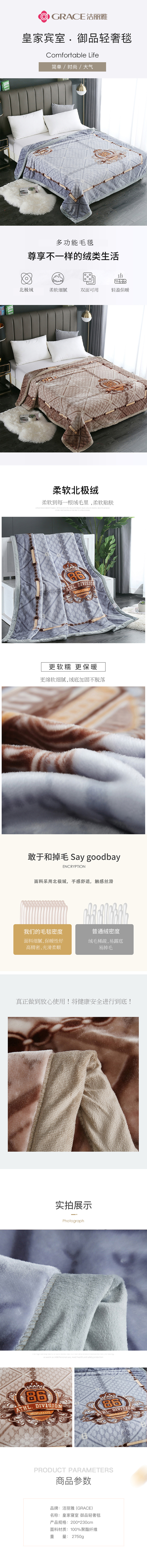 商品名称:GRACE/洁丽雅北欧时代御品轻奢多功能毛毯200*230cm 2750g