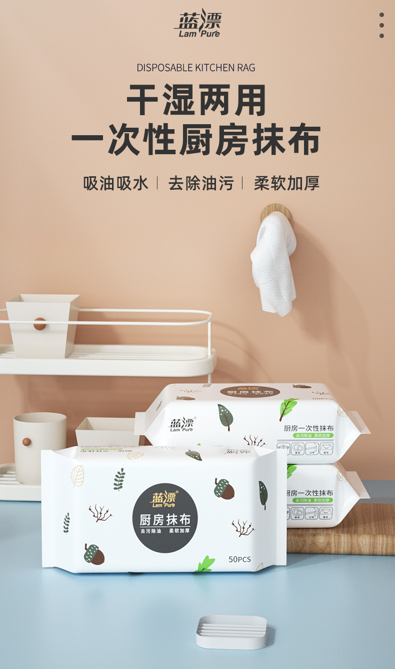Lam pure/蓝漂懒人厨房抹布50抽*18包LP-26496