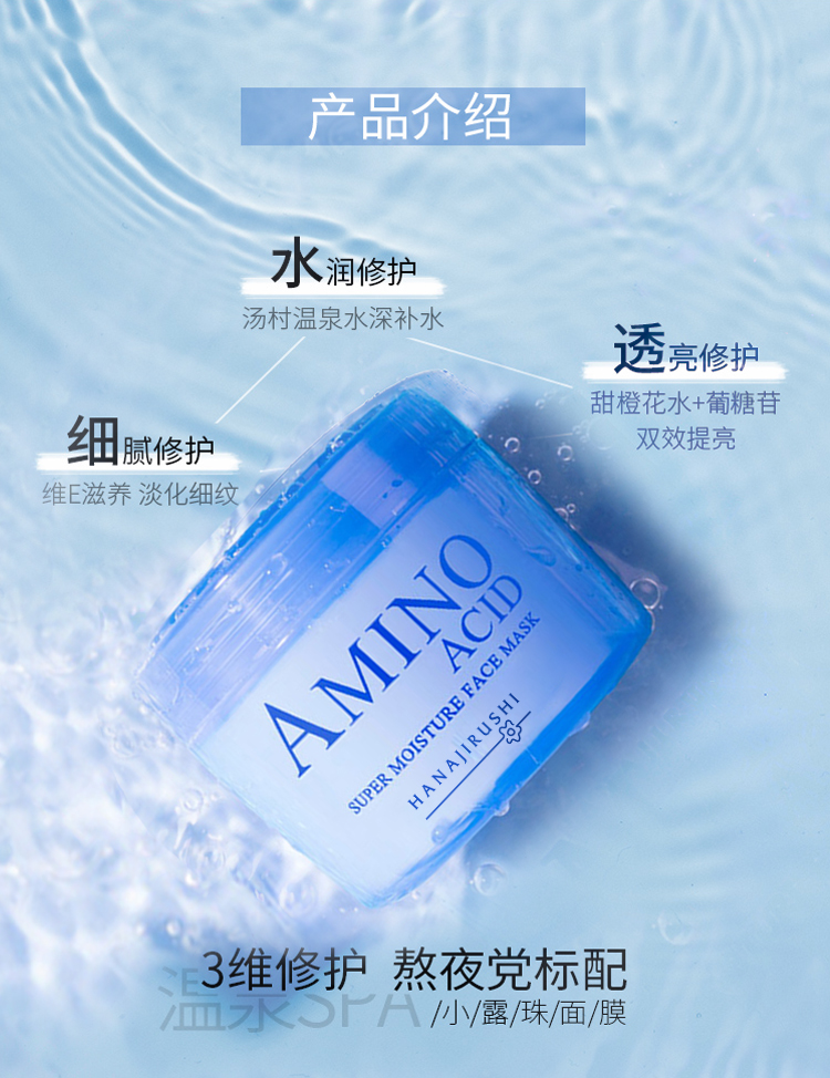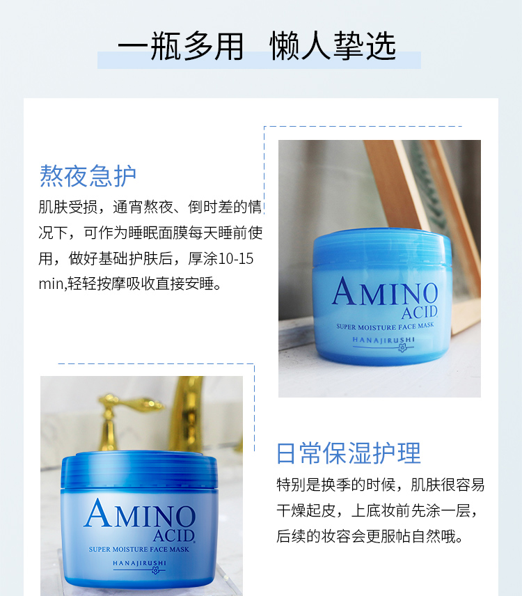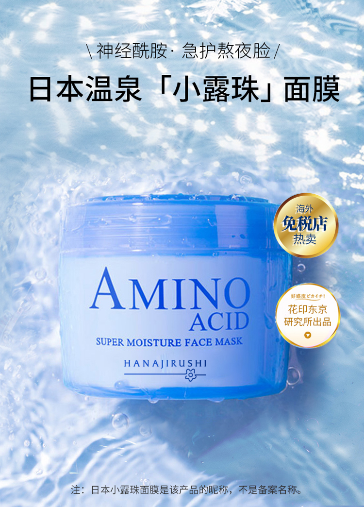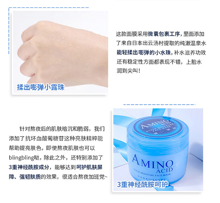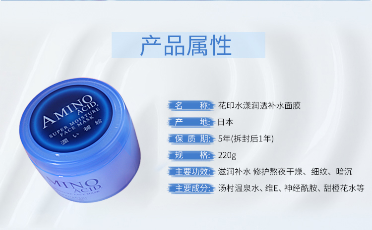 商品名称:HANAJIRUSHI/花印免洗型水漾润透补水面膜220g(日版)