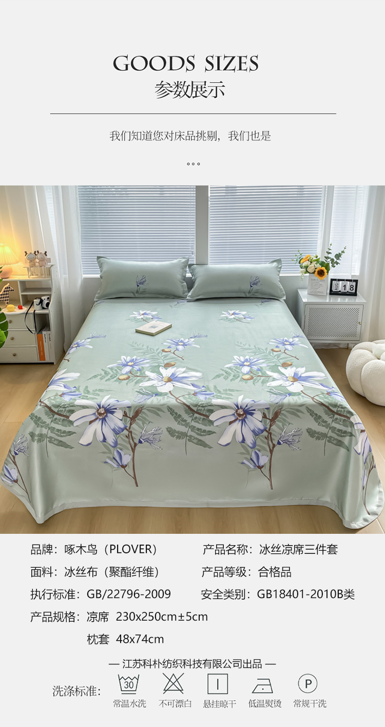 商品名称:PLOVER/啄木鸟清幽冰丝凉席三件套230x250cm