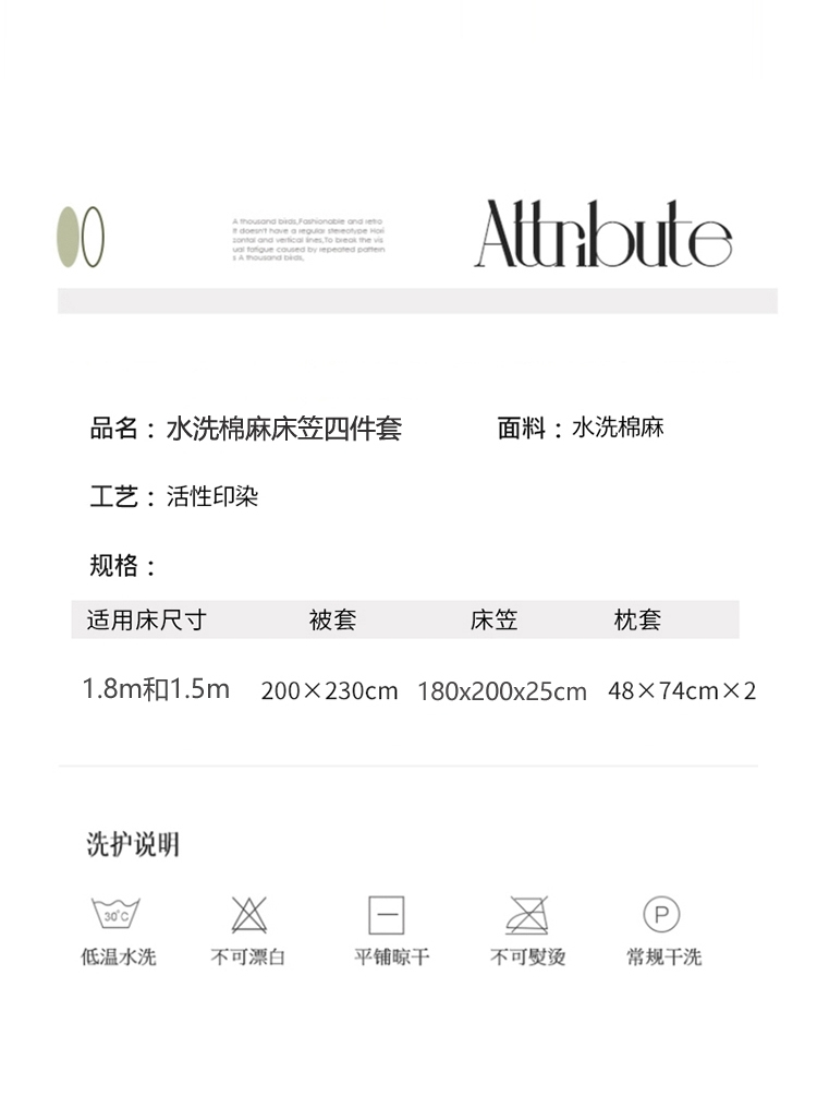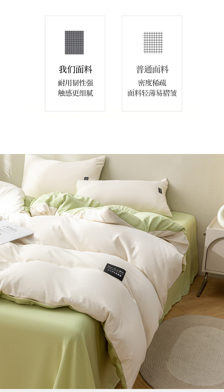 商品名称:PLOVER/啄木鸟绿豆床笠款水洗棉麻床品四件套200*230cm