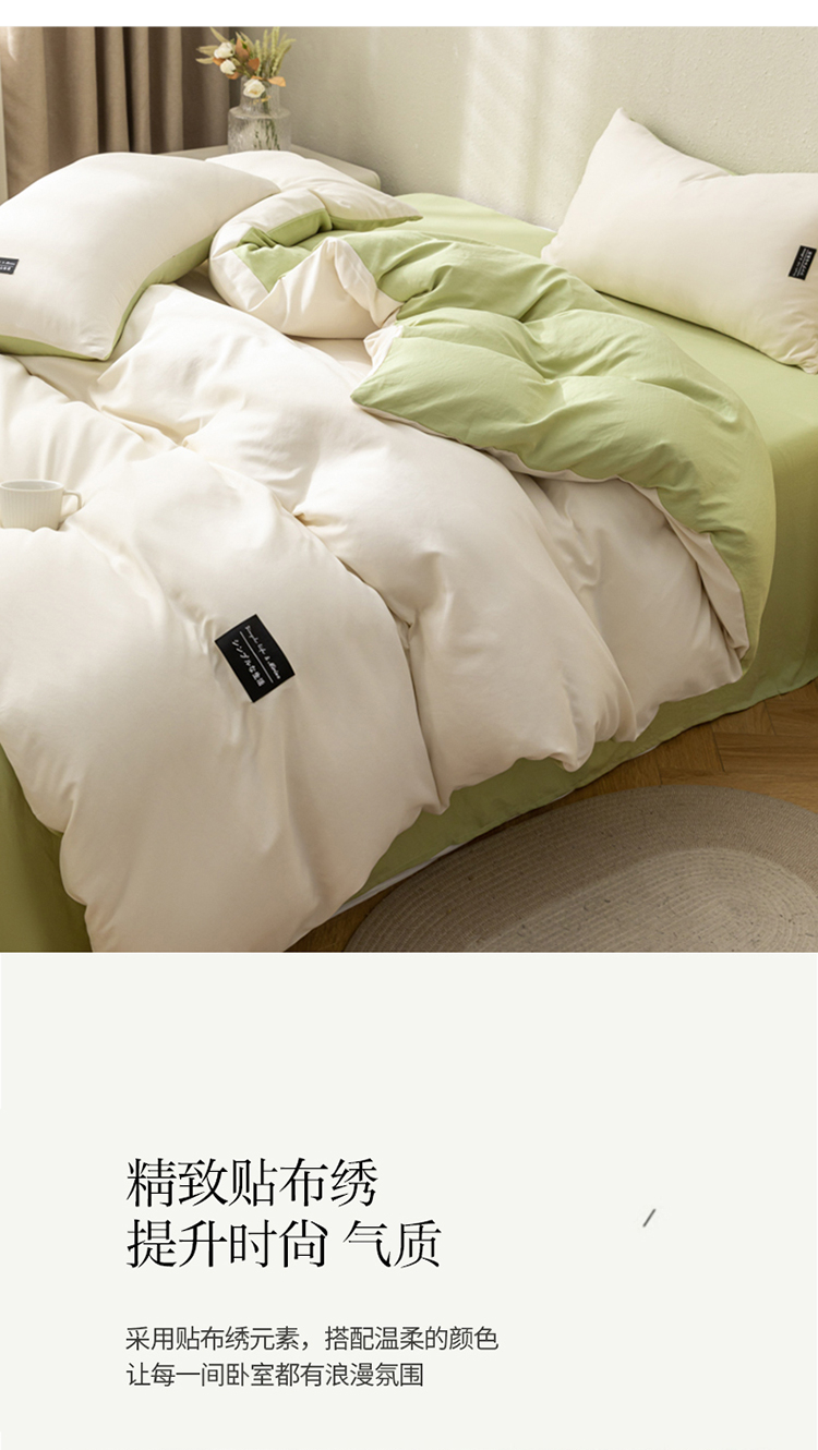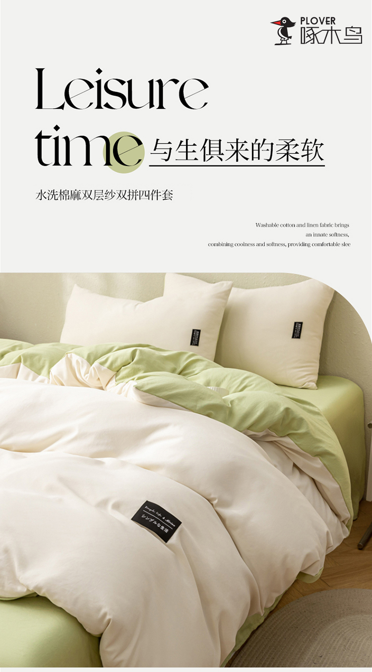 PLOVER/啄木鸟绿豆床笠款水洗棉麻床品四件套200*230cm