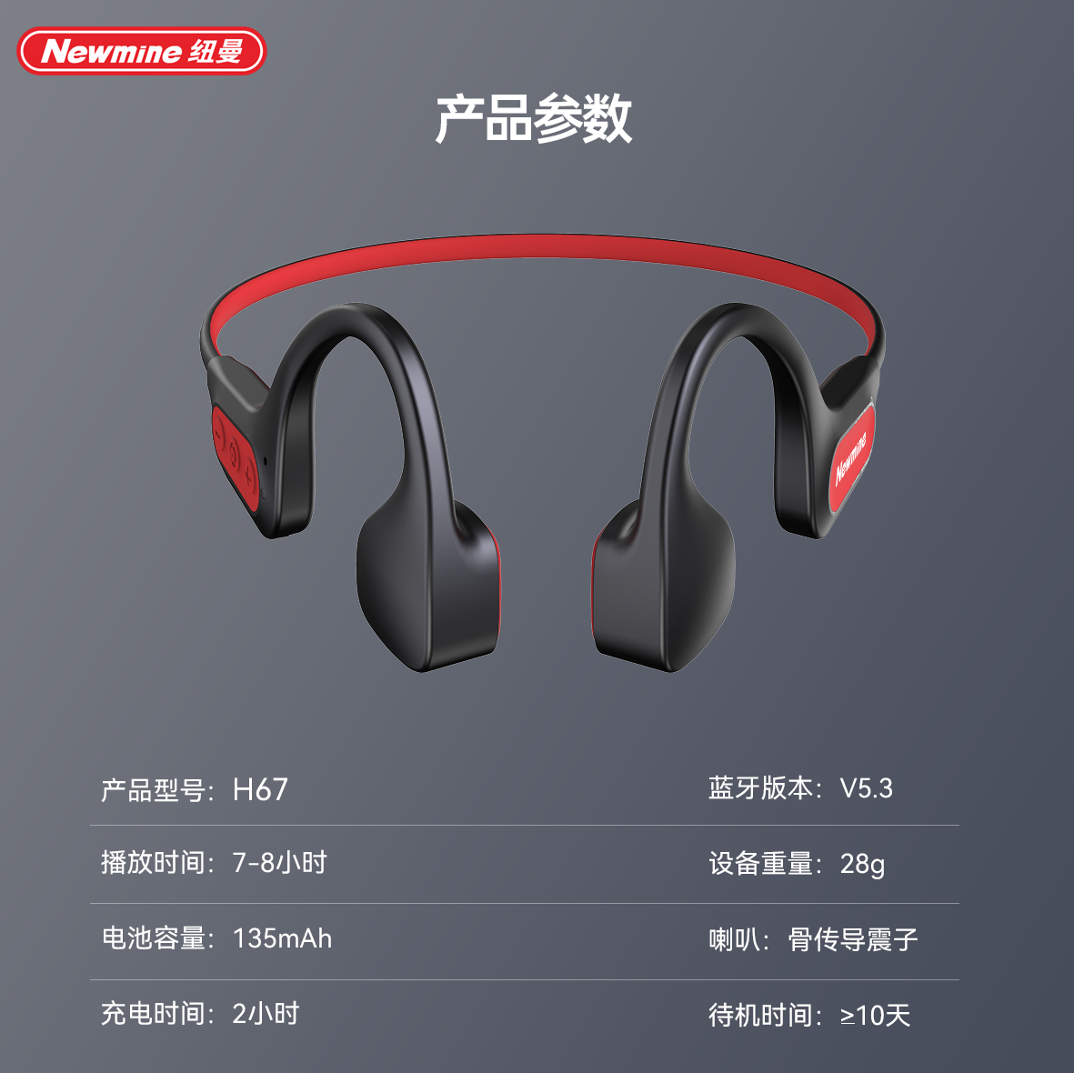 商品名称:Newmine/纽曼骨传导无线蓝牙耳机H67