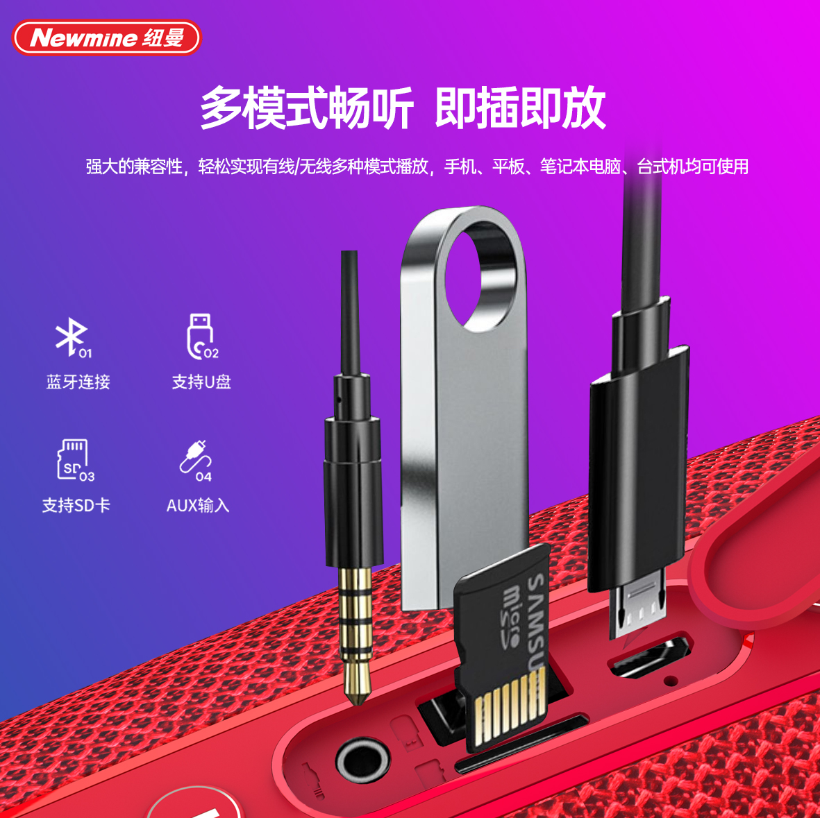 商品名称:Newmine/纽曼布艺桌面蓝牙音箱BT33