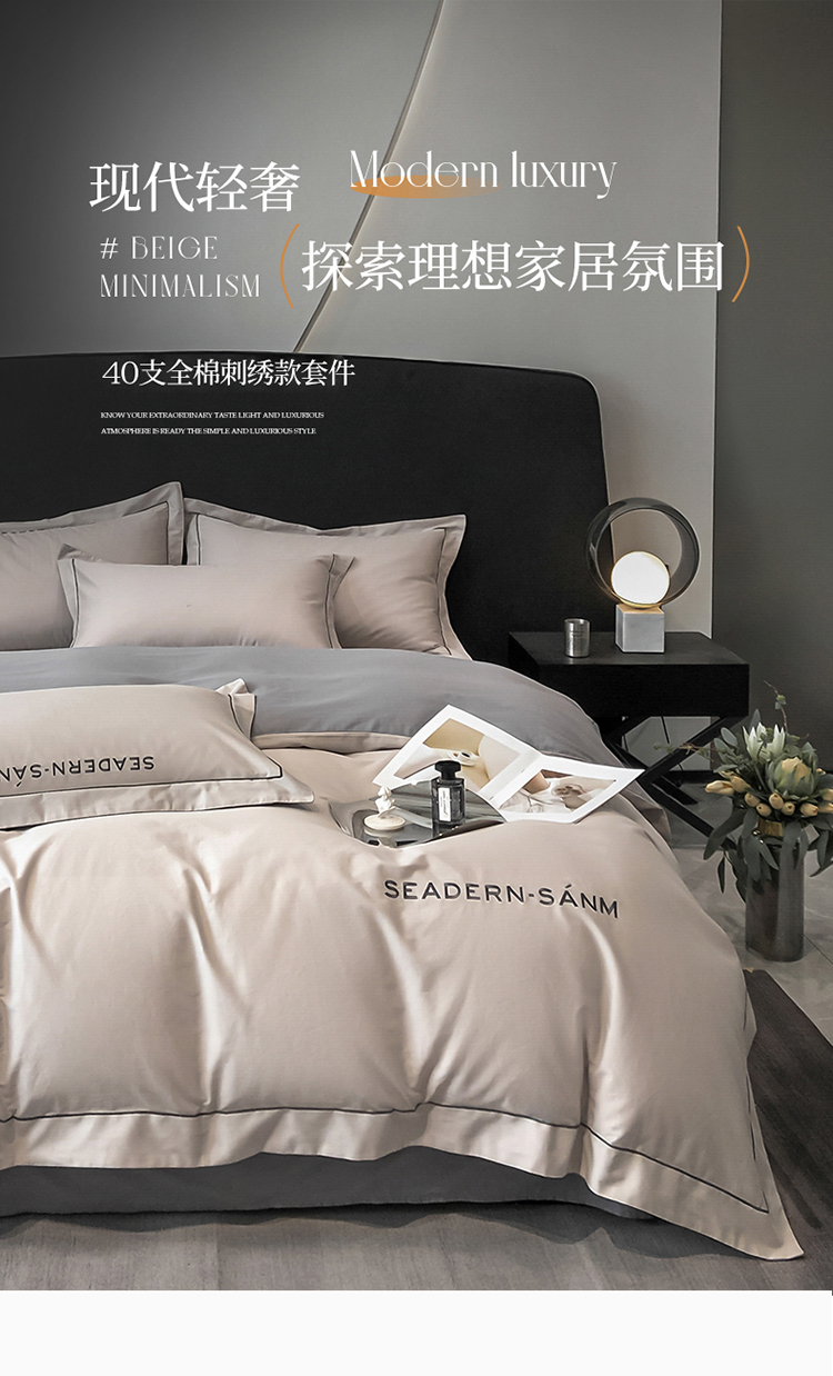 商品名称:雅鹿山灰长绒棉刺绣床品四件套200*230cm