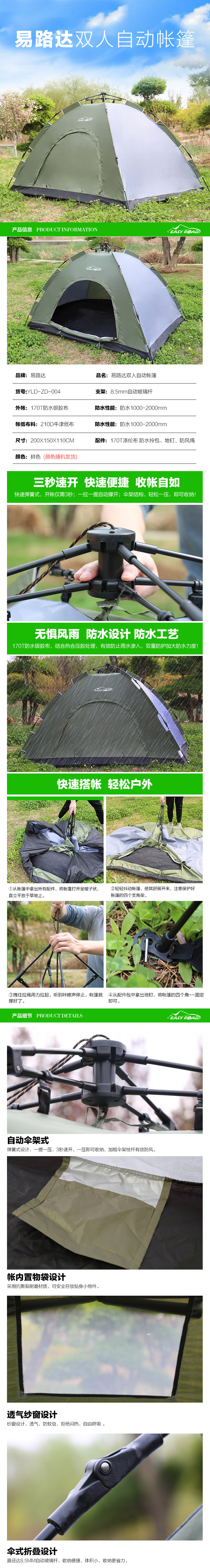 商品名称:EASY ROAD/易路达双人自动帐篷-拼色YLD-ZD-004