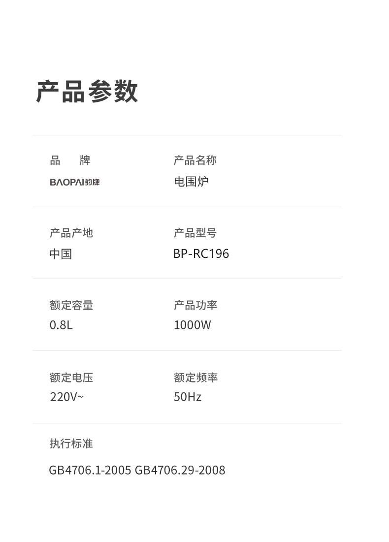 商品名称:BAOPAI/豹牌电围炉BP-RC196