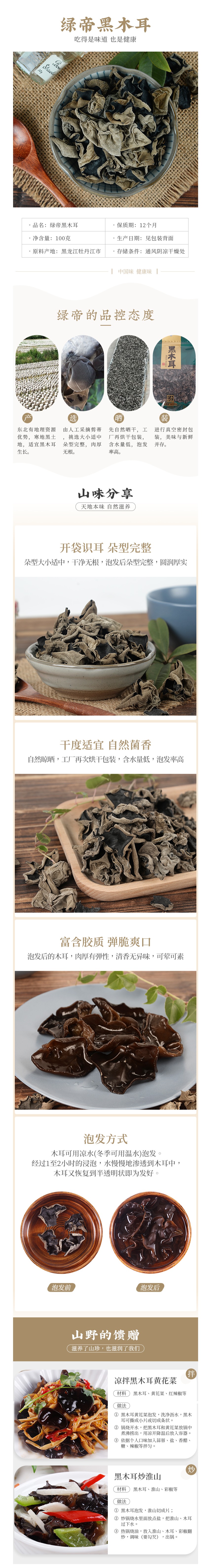 商品名称:绿帝黑木耳100g*2袋
