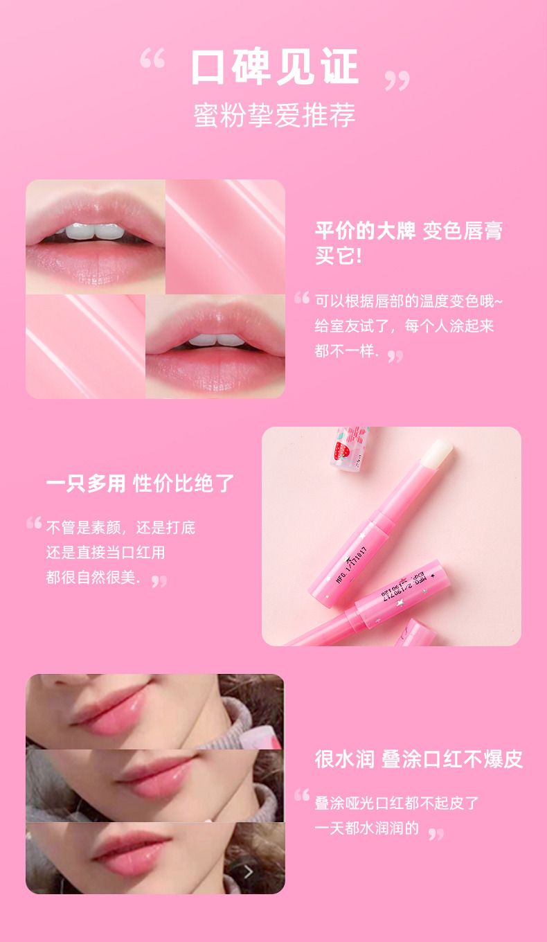 泊蝶草莓水漾润唇膏4g保湿唇部护理