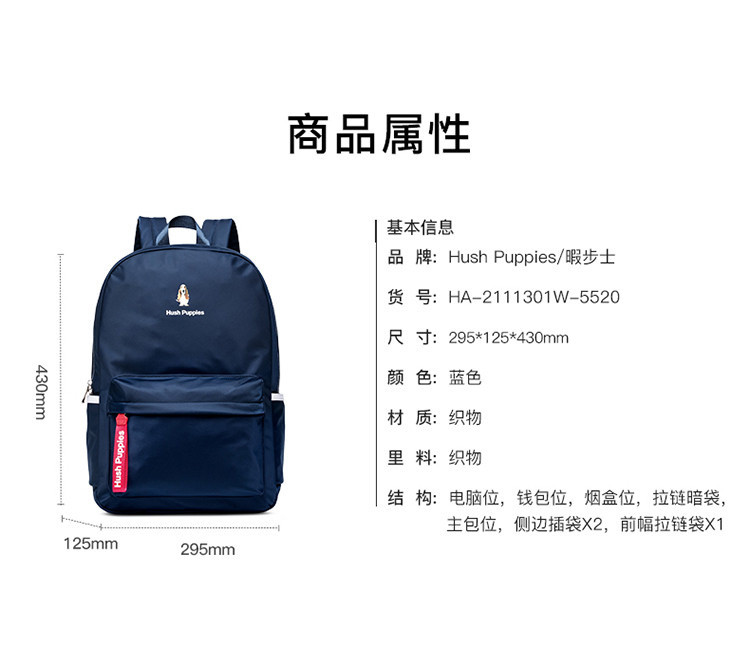 商品名称:Hush Puppies/暇步士商务双肩包HA-2111301W-5520