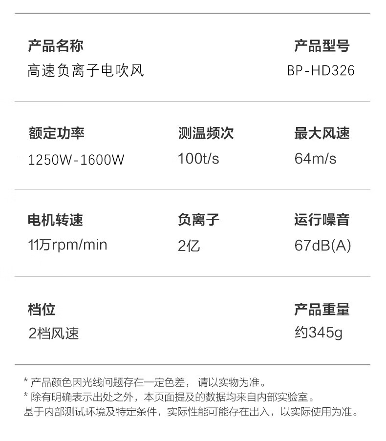 商品名称:BAOPAI/豹牌高速负离子电吹风BP-HD326