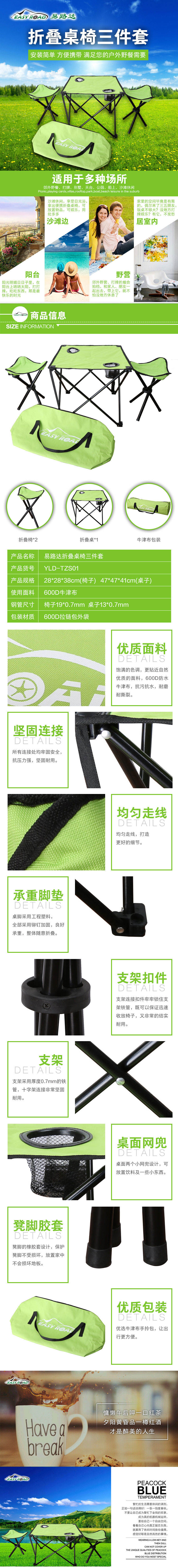 商品名称:EASY ROAD/易路达户外折叠桌椅三件套YLD-TZS01