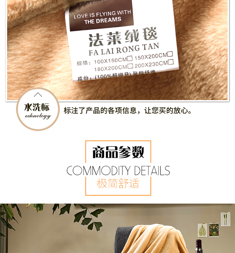 商品名称:雅鹿纯色法莱绒毯150*200cm 700g