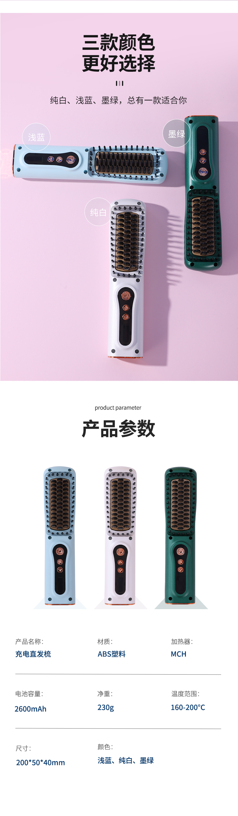 商品名称:SIWIEY/适印充电直发梳SY14