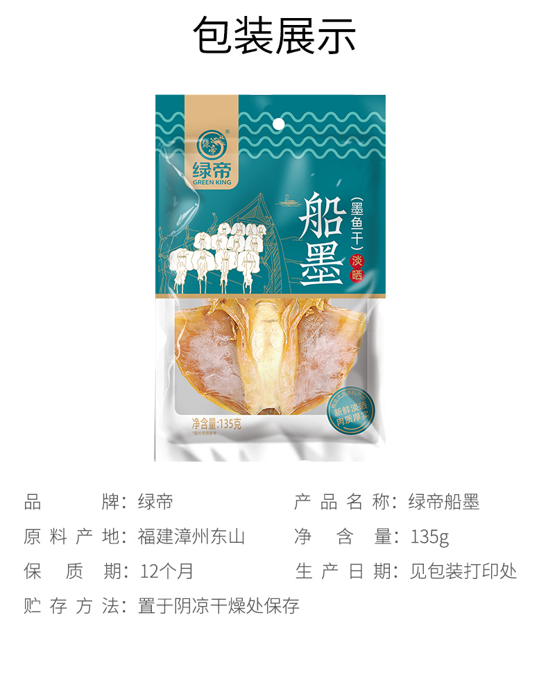 商品名称:GREEN KING/绿帝淡晒船墨鱼干135g