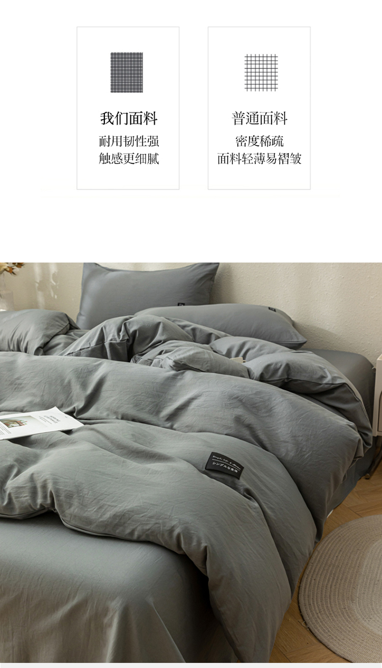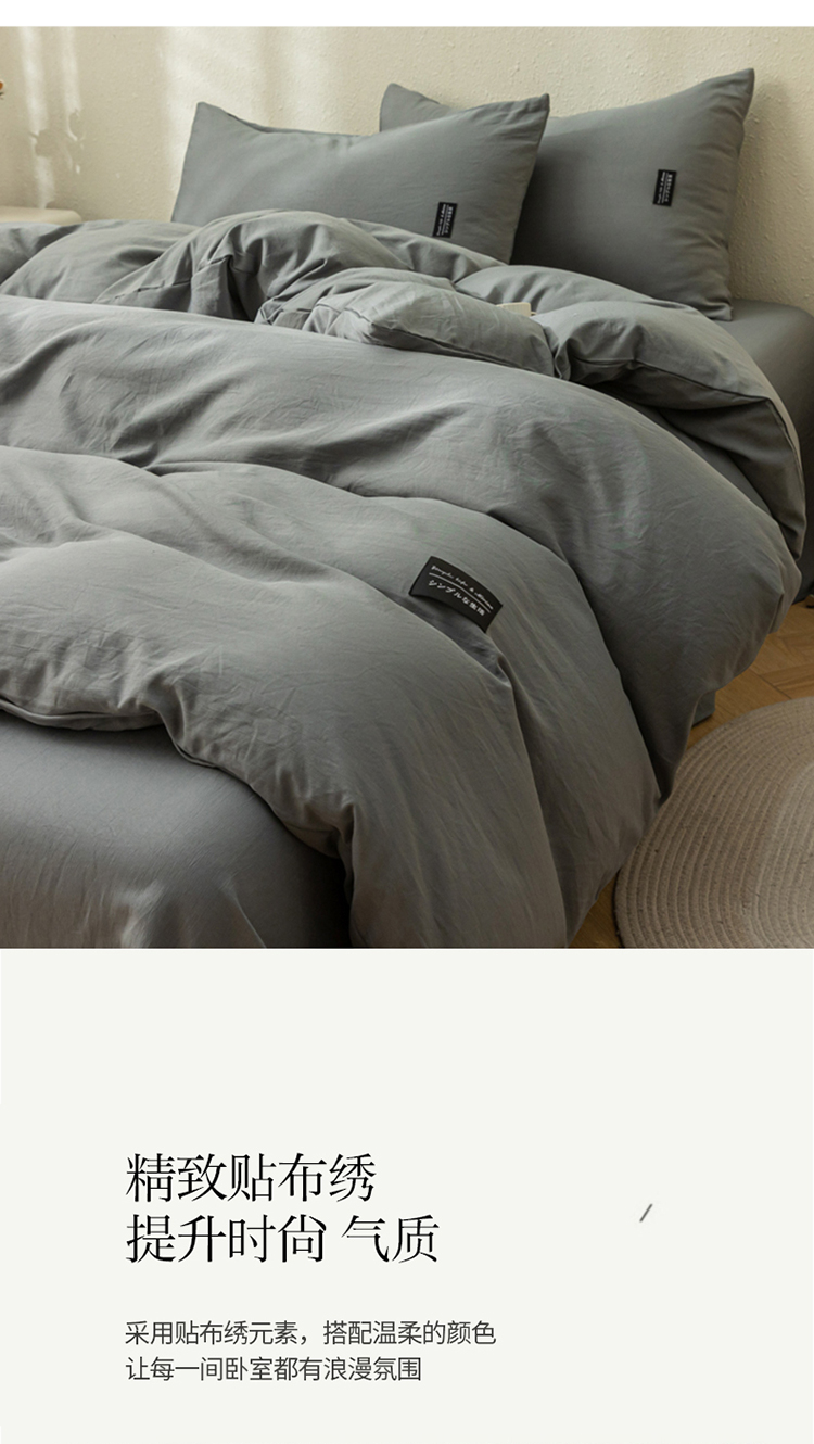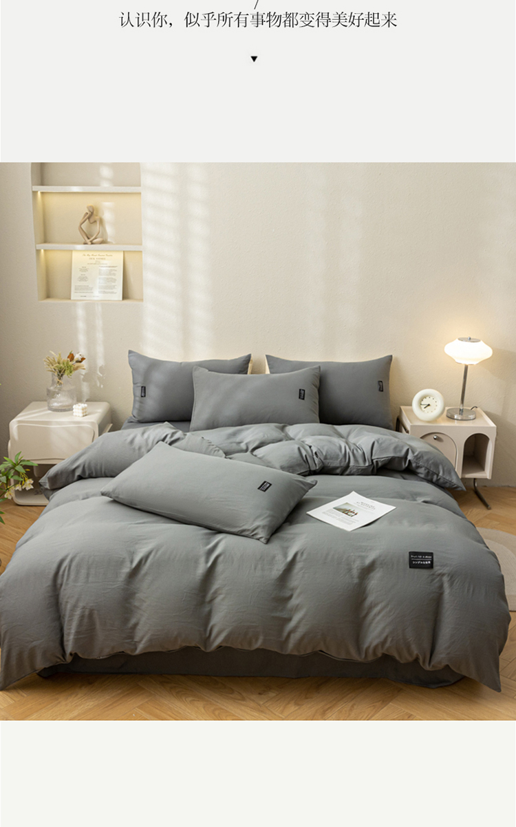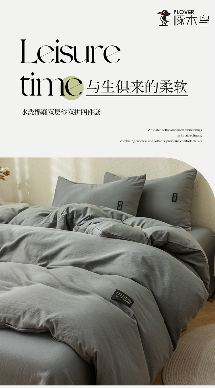 商品名称:PLOVER/啄木鸟床笠款水洗棉麻床品四件套-灰色200*230cm