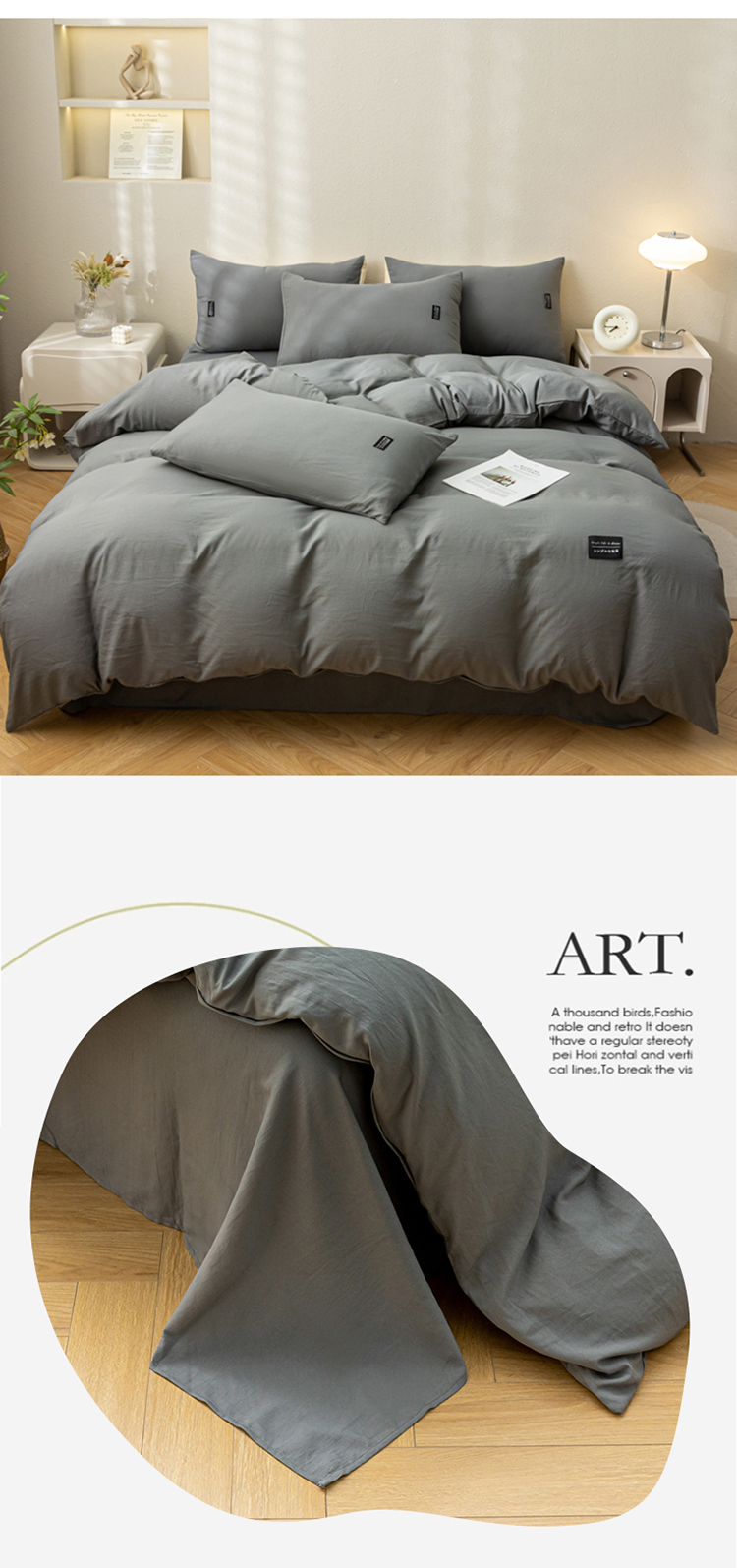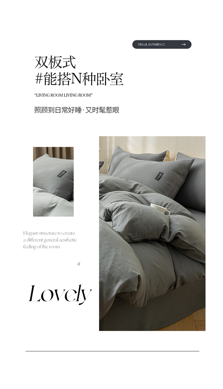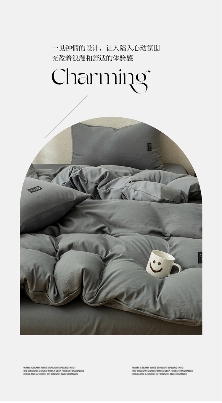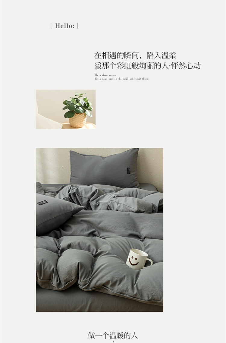 商品名称:PLOVER/啄木鸟床笠款水洗棉麻床品四件套-灰色200*230cm