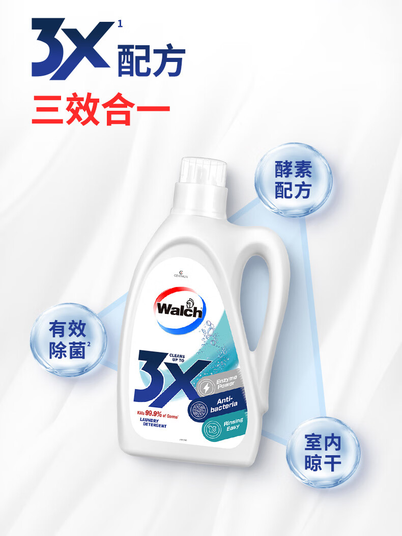 Walch/威露士3X洗衣液+9X洗衣凝珠高效洗衣组合864g+1000ml