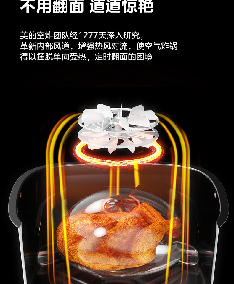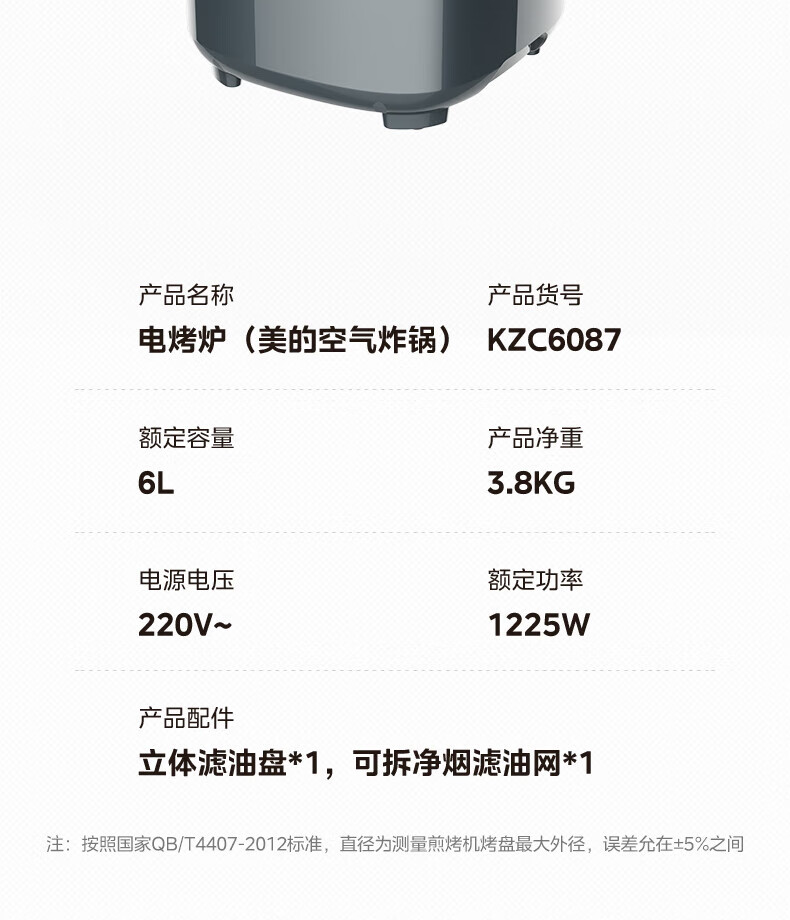 商品名称:Midea/美的6升大容量可视免翻面空气炸锅MF-KZC6087