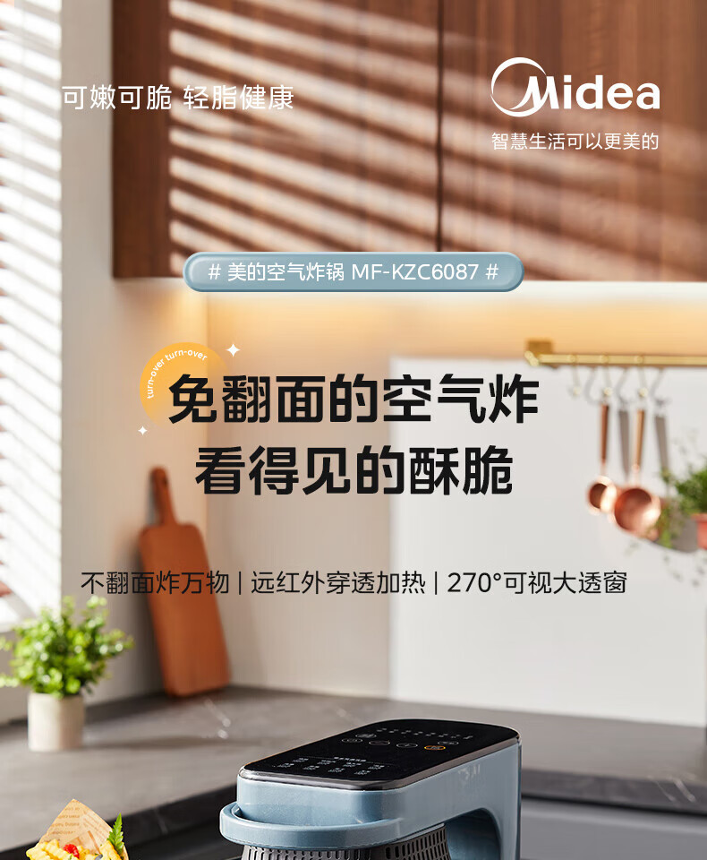 Midea/美的6升大容量可视免翻面空气炸锅MF-KZC6087