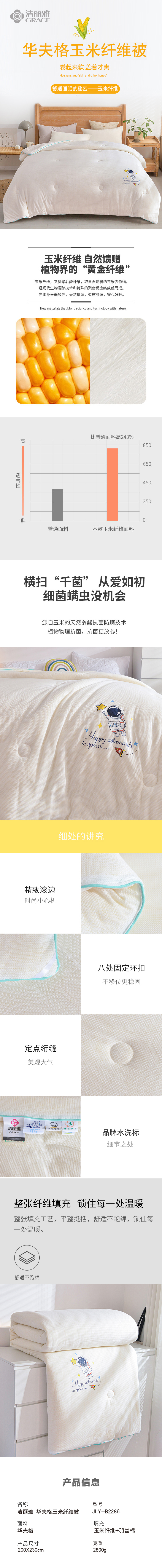 商品名称:GRACE/洁丽雅华夫格玉米纤维被2800g 200*230cm JLY-B2286