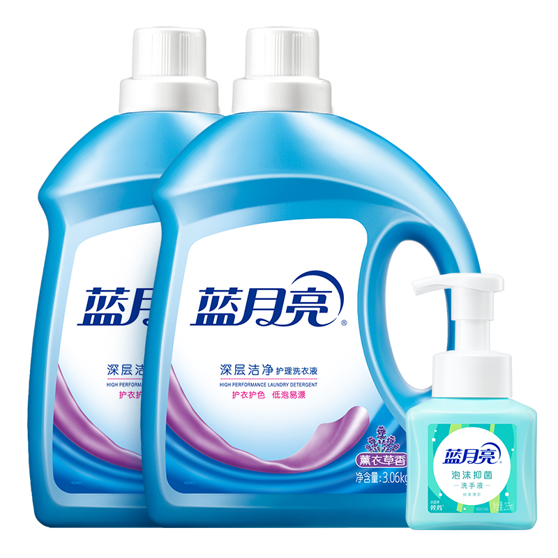 商品名称:蓝月亮薰衣草洁净洗衣液鲜果薄荷泡沫抑菌洗手液组合6375g 80002532