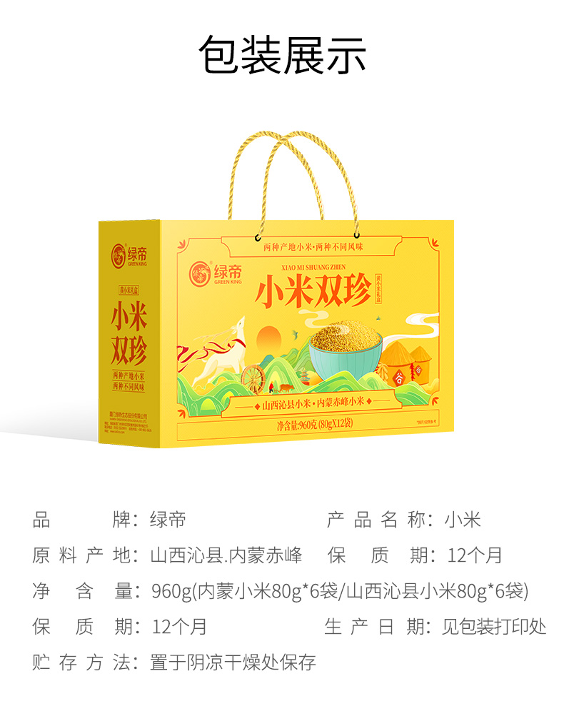 商品名称:GREEN KING/绿帝小米双珍杂粮礼盒960g