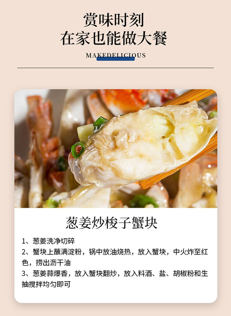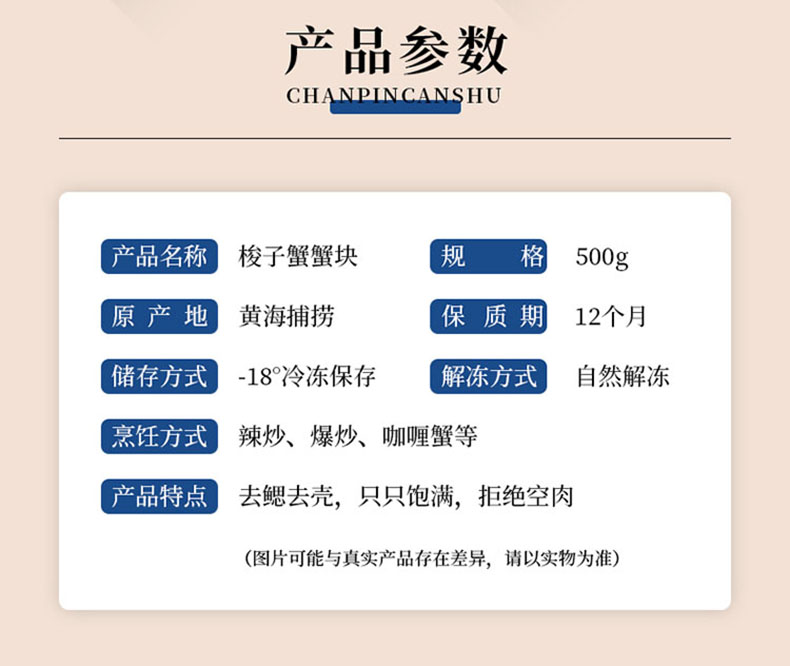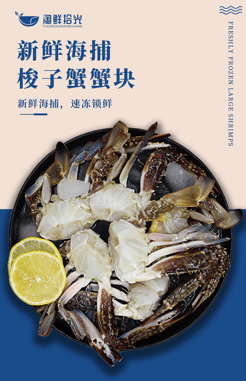 商品名称:【顺丰配送】淘鲜拾光吕四黄海速冻锁鲜免处理梭子蟹块500g*2袋