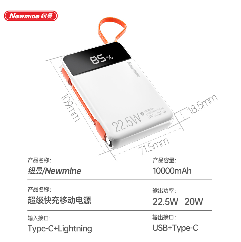 商品名称:Newmine/纽曼10000mAh超级快充移动电源P168