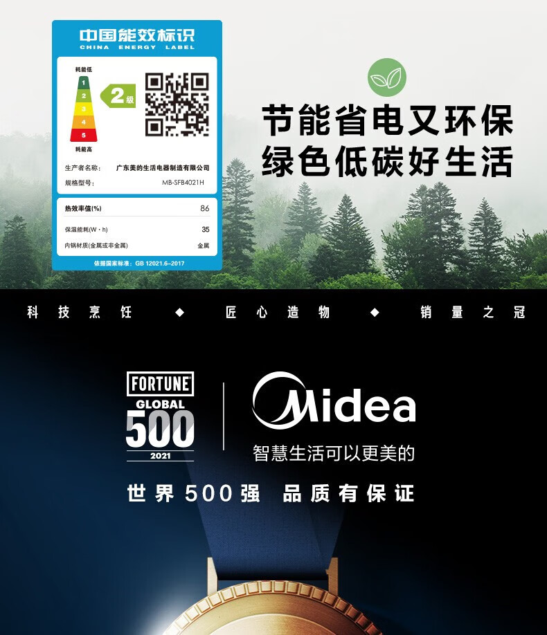 商品名称:Midea/美的4升智能电饭煲MB-SFB4021H