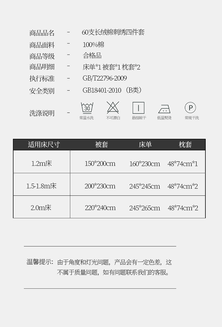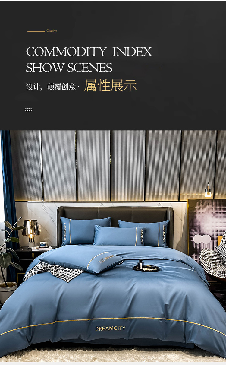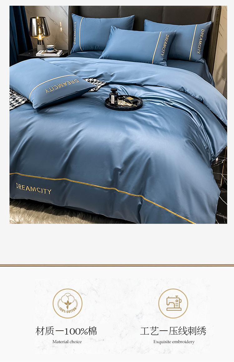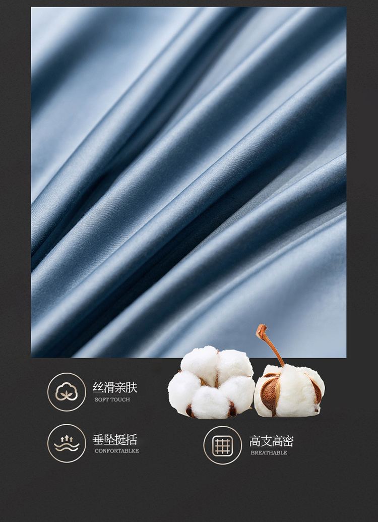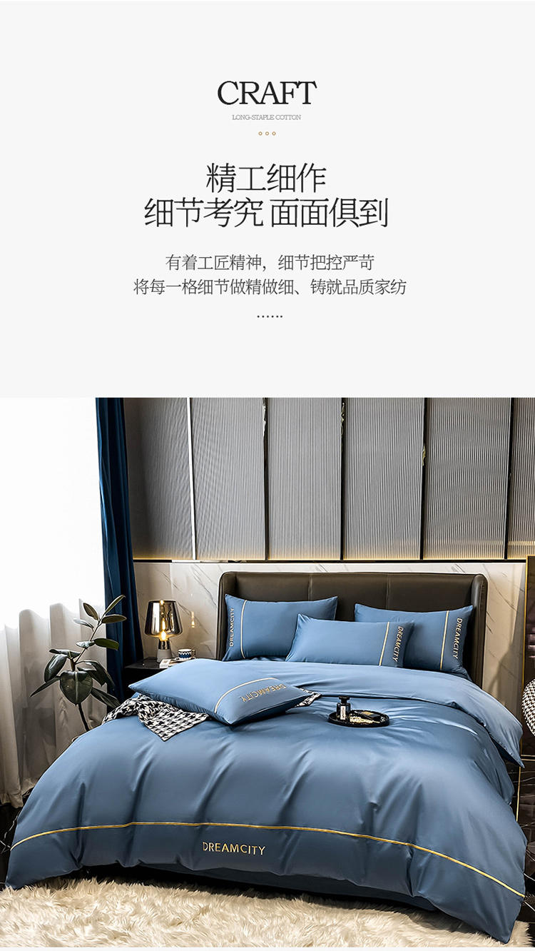 商品名称:PLOVER/啄木鸟宾利蓝60S长绒棉床品四件套230*250cm
