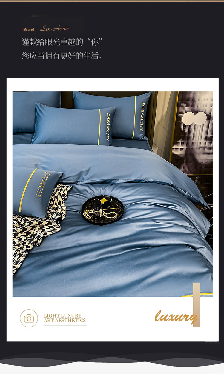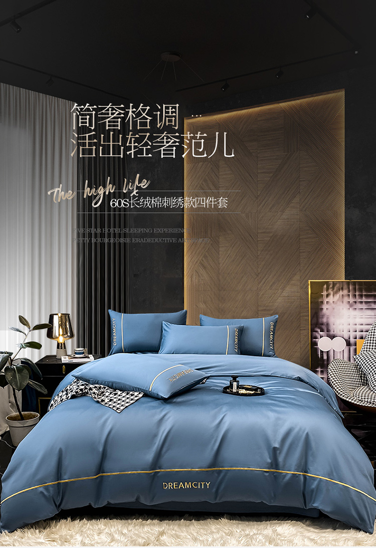 PLOVER/啄木鸟宾利蓝60S长绒棉床品四件套230*250cm