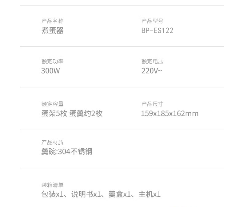 商品名称:BAOPAI/豹牌多功能煮蛋器BP-ES122