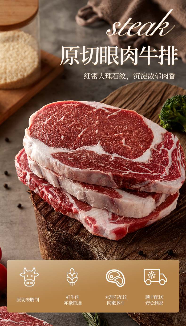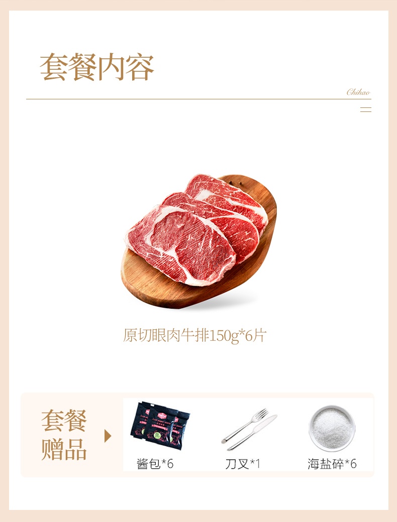 商品名称:【京东/顺丰配送】赤豪原切眼肉牛排150g*6片