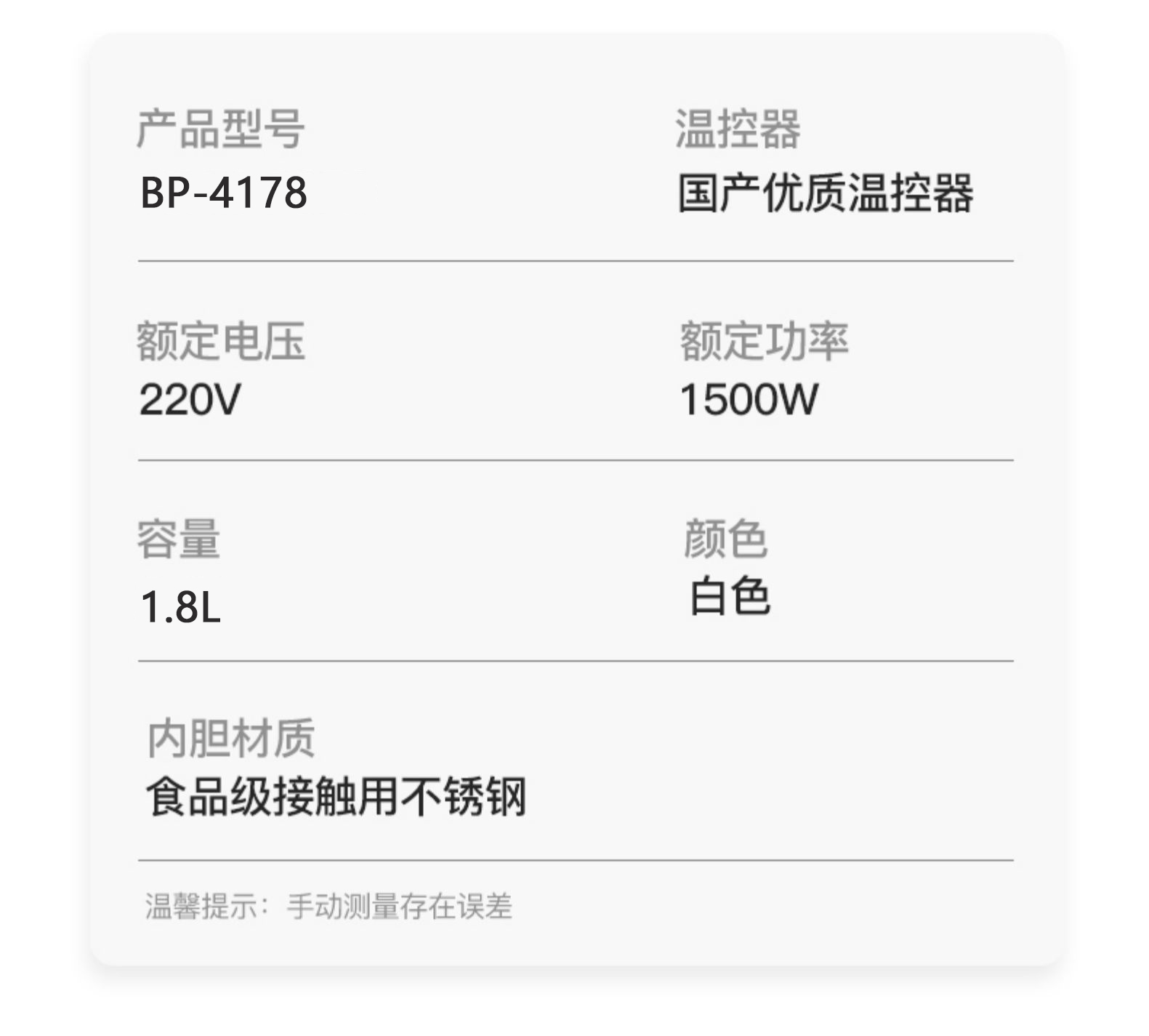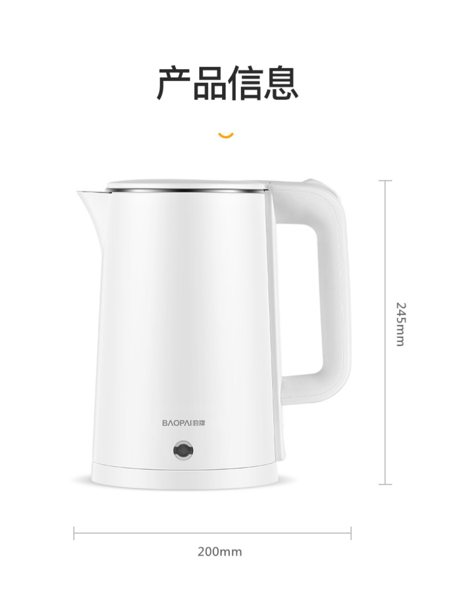 商品名称:BAOPAI/豹牌1.8升防烫电热水壶BP-4178