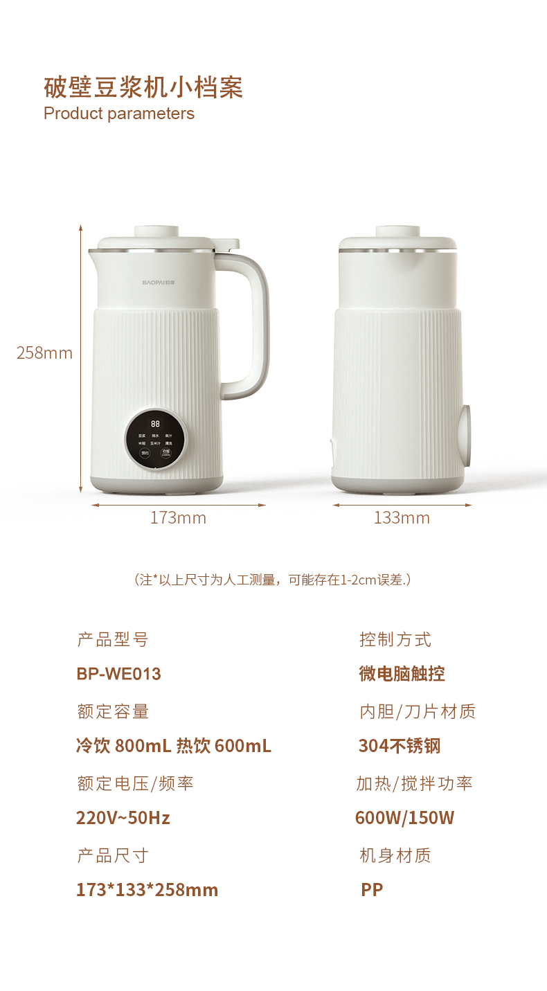 商品名称:BAOPAI/豹牌800毫升破壁豆浆机BP-WE013
