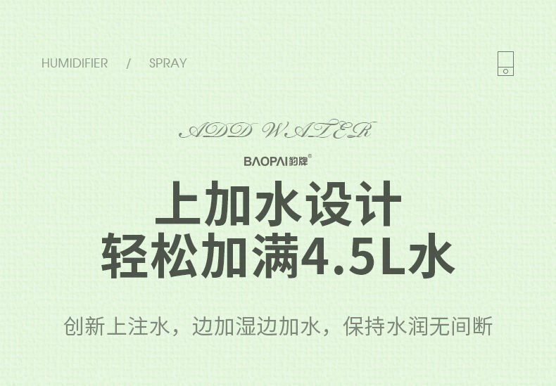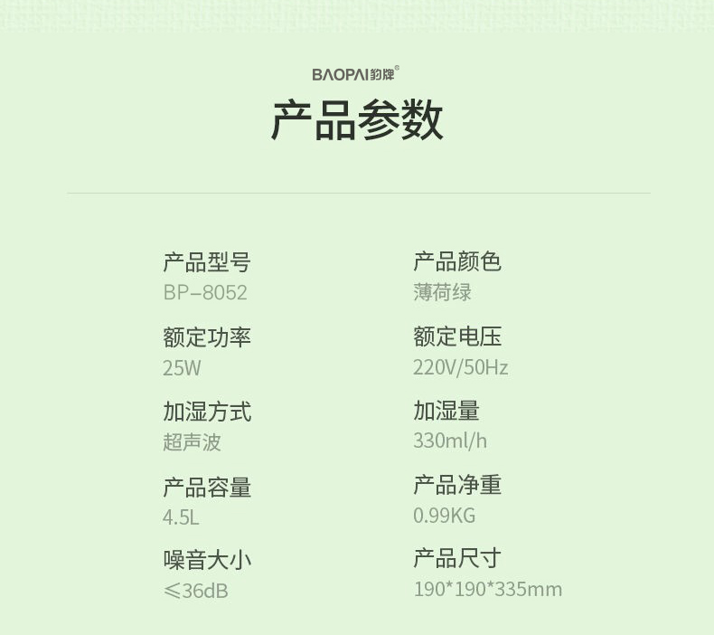 商品名称:BAOPAI/豹牌4.5升台式加湿器BP-8052