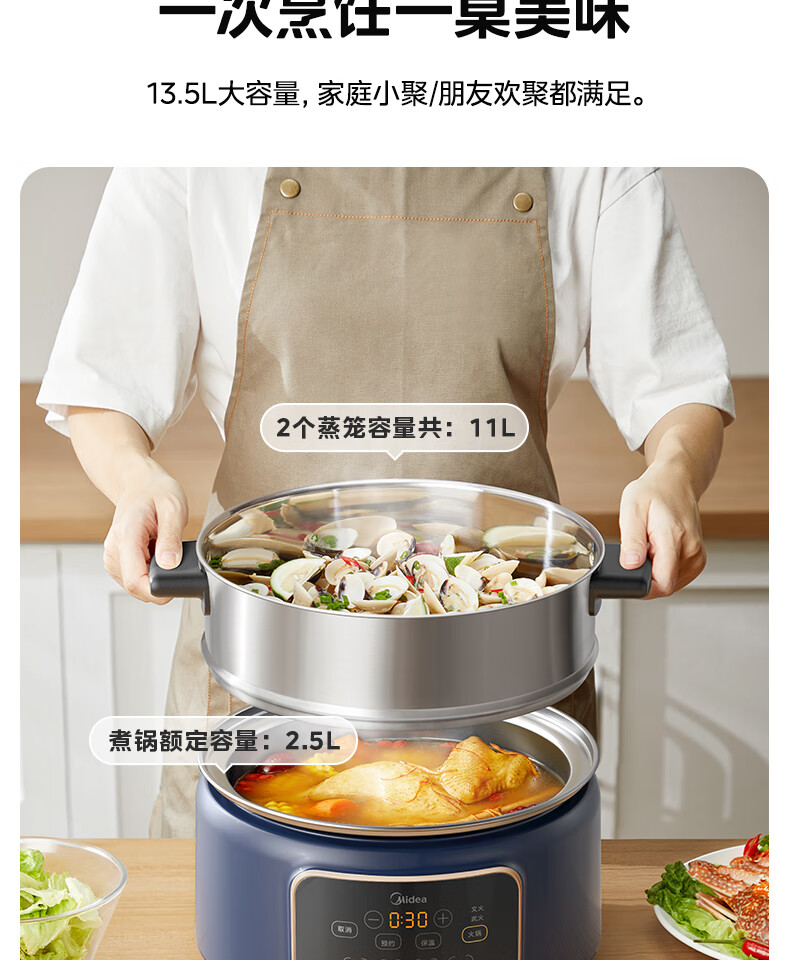 【京东/顺丰/德邦配送】Midea/美的13.5升电蒸锅MZ-ZGC2810
