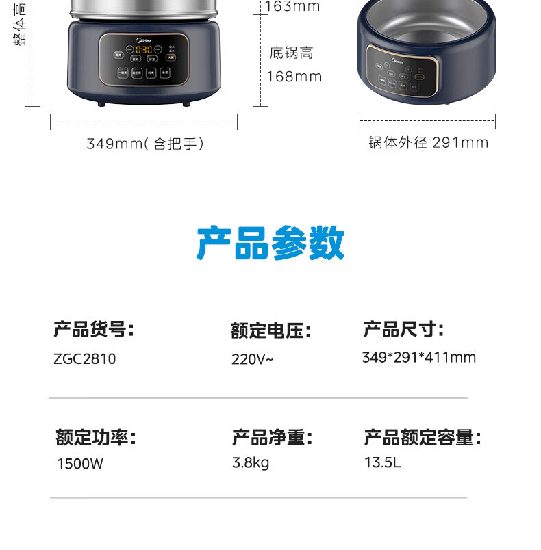 商品名称:【京东/顺丰/德邦配送】Midea/美的13.5升电蒸锅MZ-ZGC2810