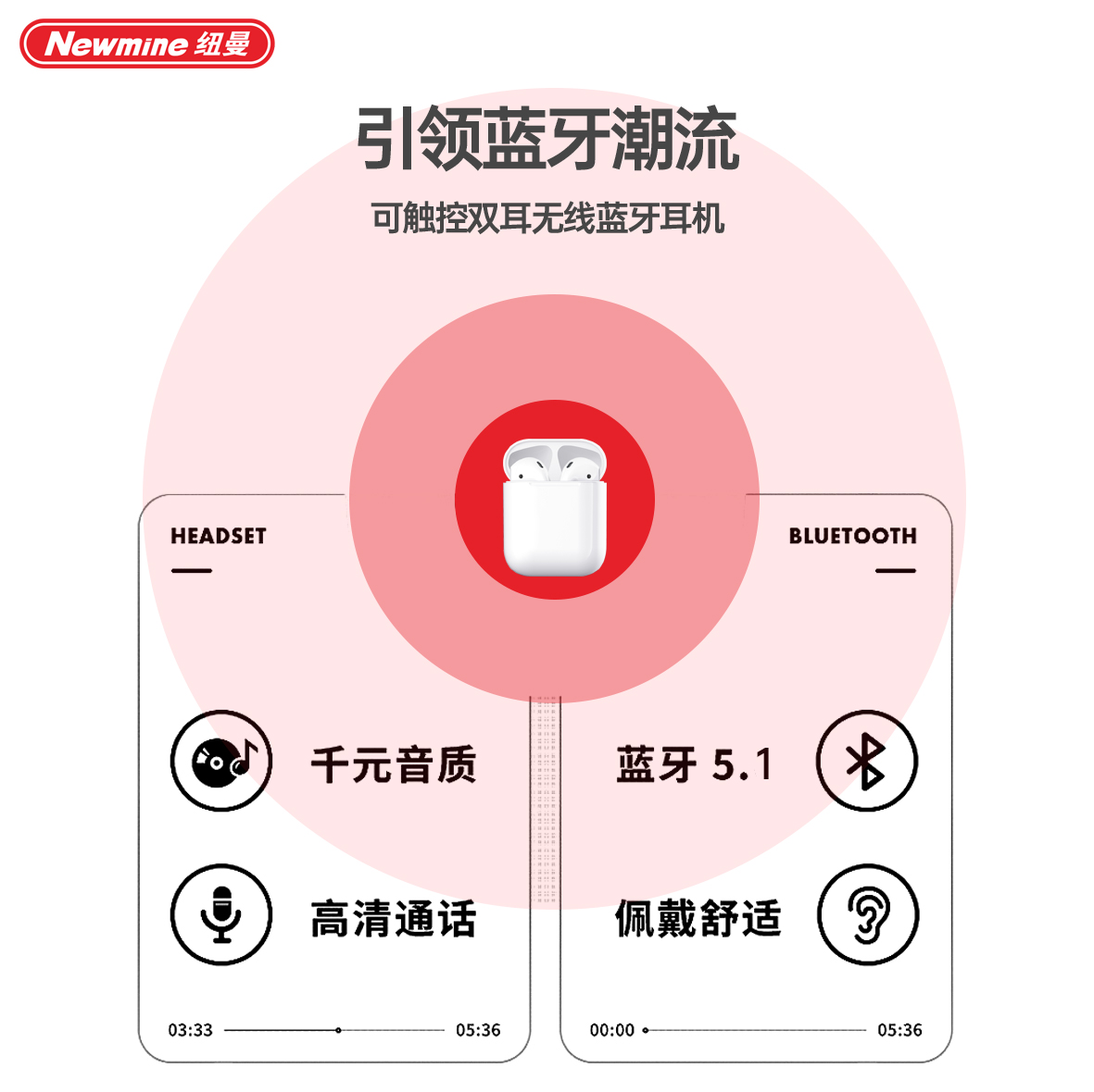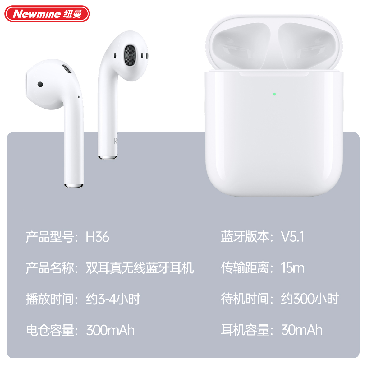 商品名称:Newmine/纽曼双耳真无线蓝牙耳机H36