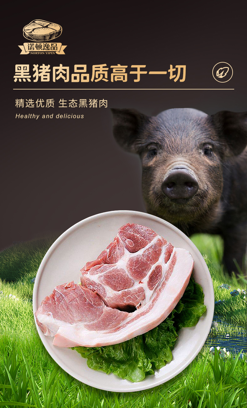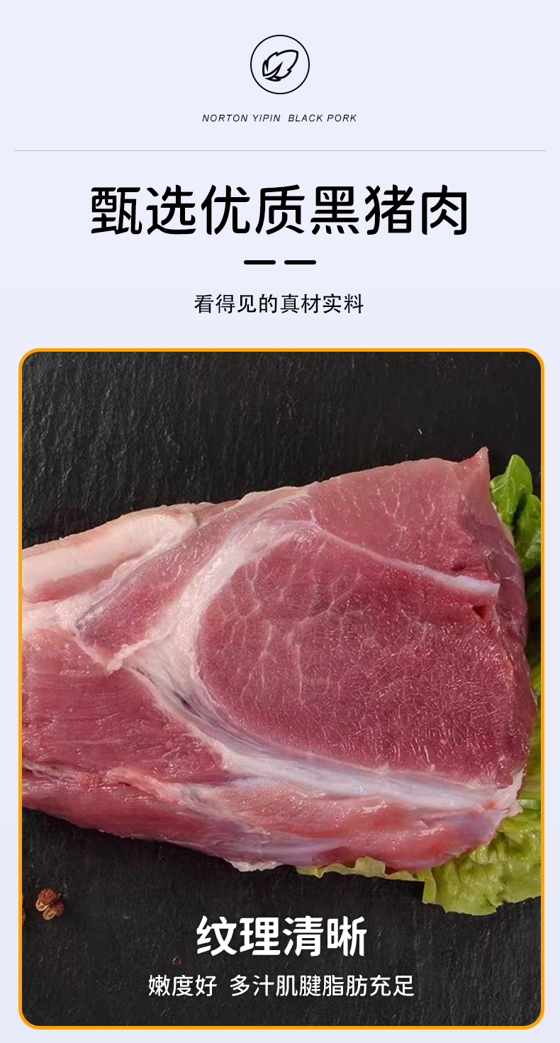 商品名称:【顺丰配送】诺顿逸品黑猪带皮前腿肉500g*2袋