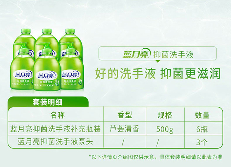 商品名称:蓝月亮芦荟洗手液套装3000g 10001018