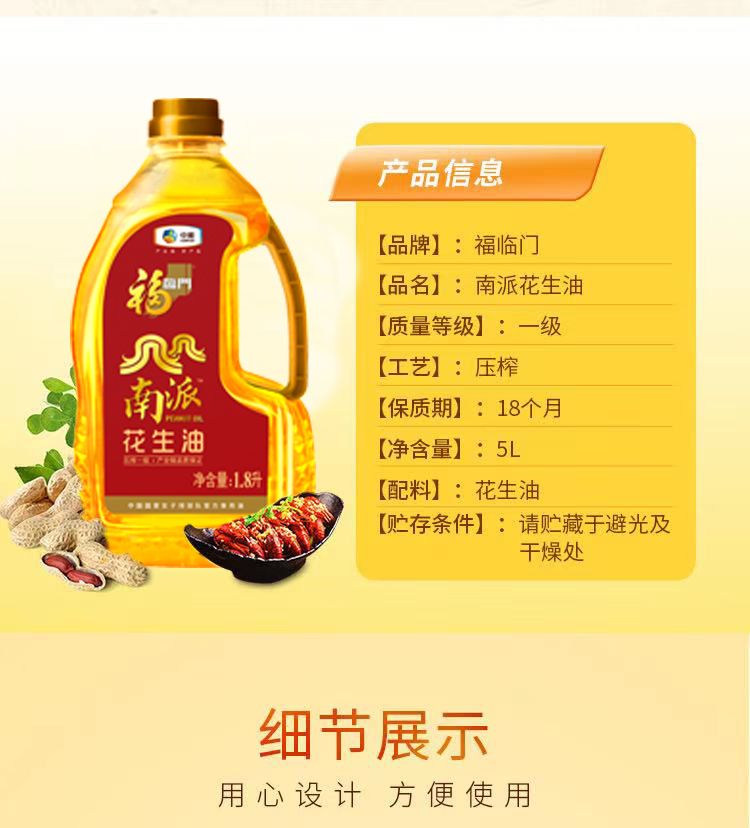 商品名称:中粮福临门南派花生油礼盒1.8L*2瓶