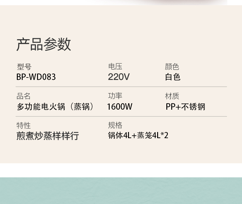 商品名称:BAOPAI/豹牌多功能电火锅BP-WD083