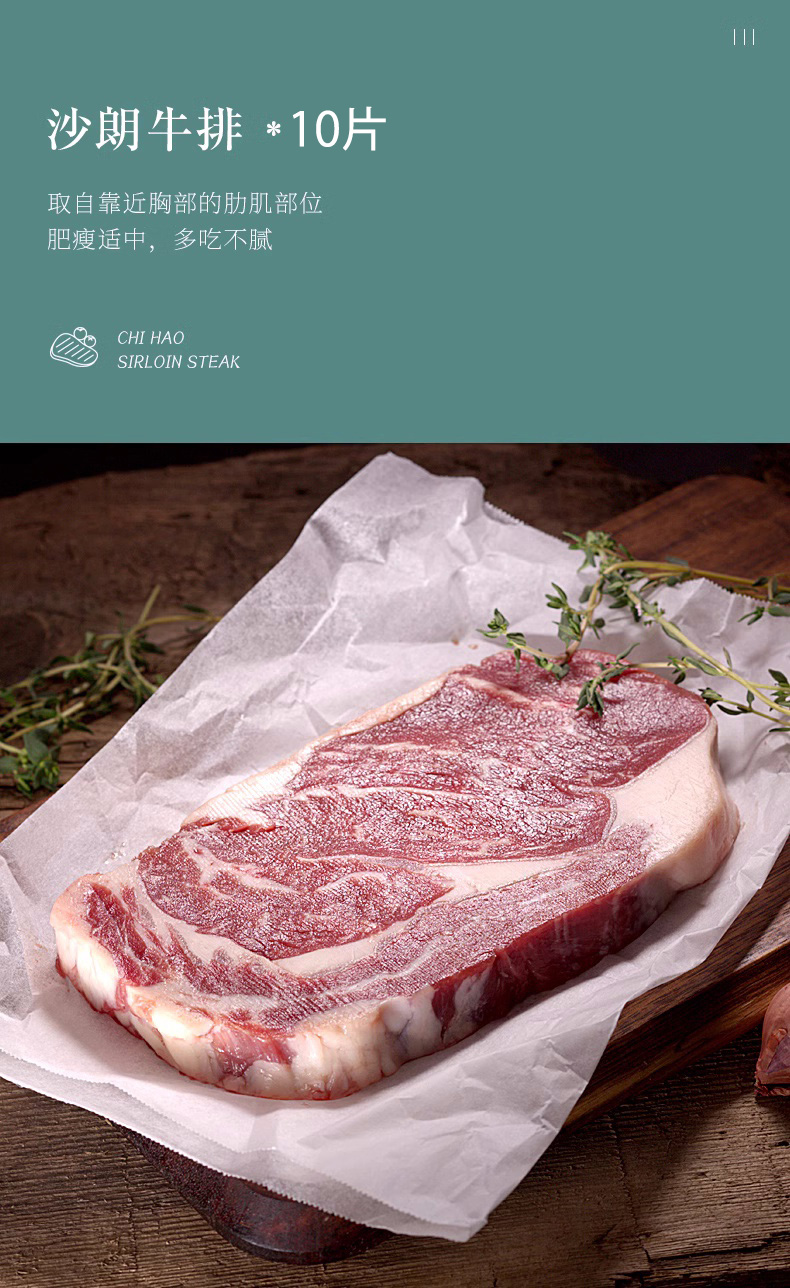 商品名称:【顺丰配送】赤豪整切沙朗牛排100g*10片