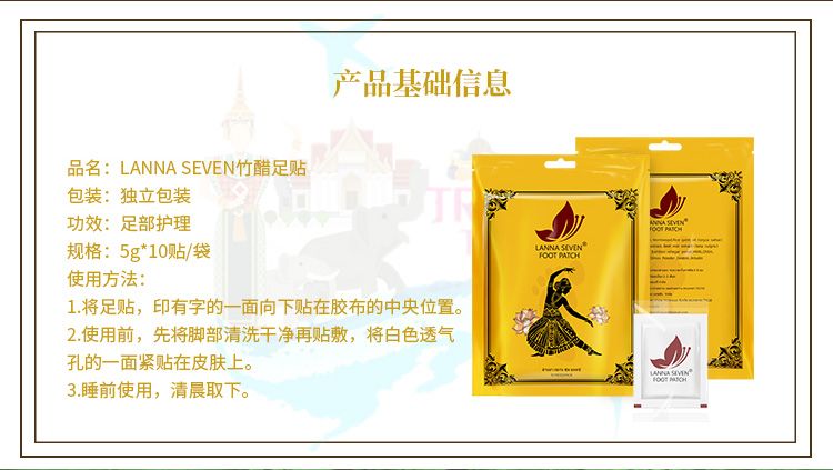 商品名称:【秒杀10包】LANNA SEVEN竹醋足贴(规格:5g*10贴/包)【保质期:3年】